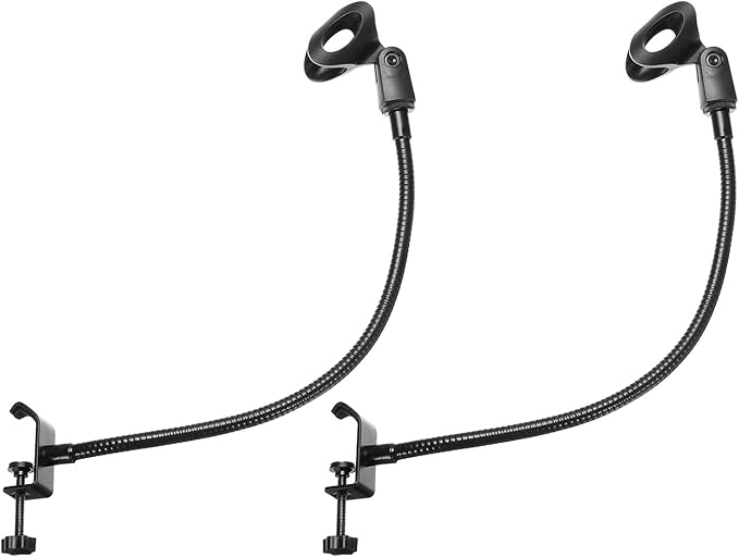 仕様: 全体サイズ: 470 x 74 mm (長さ*幅); チューブ外径: 10mm ; 雄ねじサイズ: 3/8"; マイクホルダー直径: 28mm~38mm; マイク クリップサイズ: 12mm~34mm; 材質: 金属; カラー: 黒; 梱包内容: グースネックチューブ x 2; クリップ x 2; マイクホルダー x 2; 3/8"~5/8"マイクアダプター x 2。