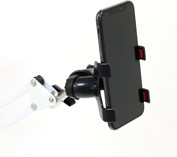 スプリングアームにより自在に位置の調節が可能な卓上スマホスタンド