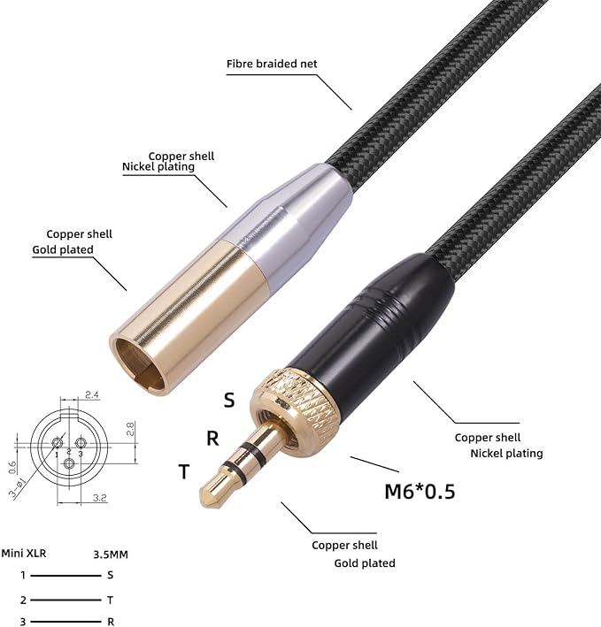 3.5mm - ミニ XLR ケーブル、3.5mm ステレオ - 3 ピン ミニ XLR コード、HiFi 音質 ミニ XLR ケーブル BMPCC シリーズ ビデオカメラ用 C70 ビデオカメラ用