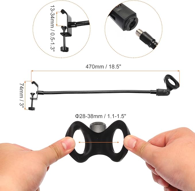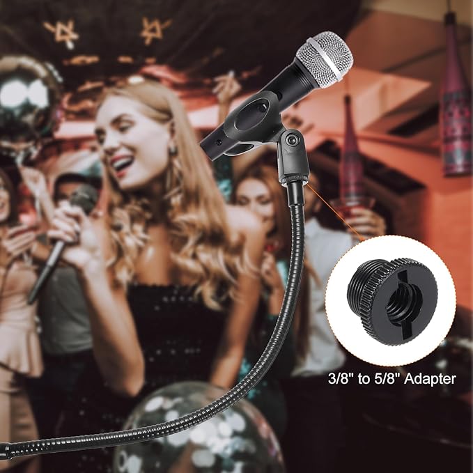 2. 柔軟で曲げられるグースネックは 180 度曲げることができ、任意の角度に調整できるため、さまざまなニーズに対応できます。マイク ホルダーは 3/8 "から 5/8 "へのアダプターを使用して設計されているため、さまざまなマイクに合わせてサイズを簡単に変換できます。