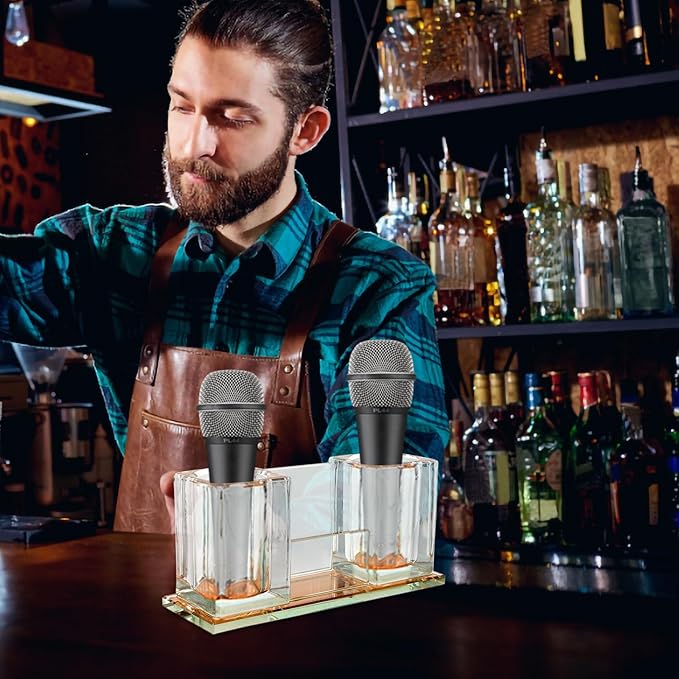 Lurrose デスクトップ マイクスタンド アクリル素材 卓上ワイヤレスマイクホルダー 音響機器用 安定したマイク収納 スタジオや家庭用に最適 7.6X3.5X2.6インチ