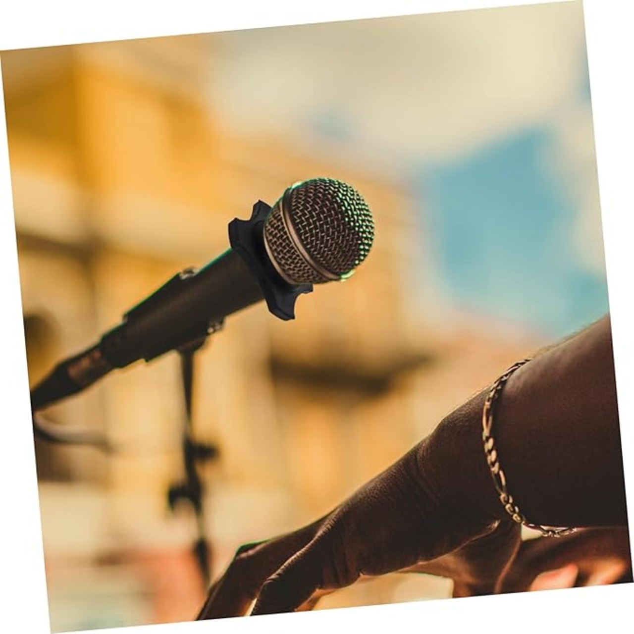 マイク滑り止めリング: ほとんどの標準マイク用に設計された、実用的で便利なアクセサリです。