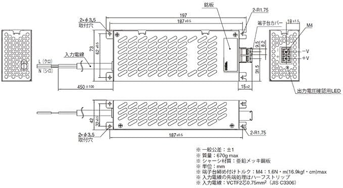 雑音端子電圧:電安法適合 冷却方法:自然空冷