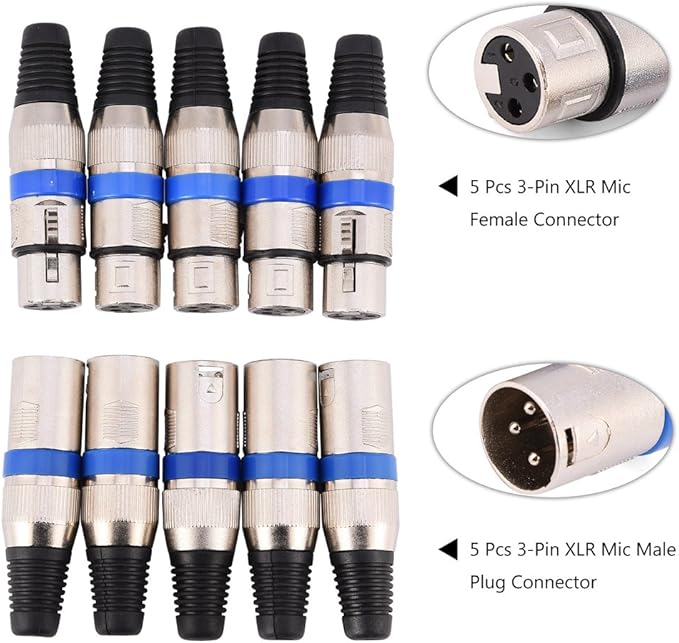 VBESTLIFE 5pcs 3ピンXLRマイクマイクオーディオコネクタオスプラグ+メスソケット 亜鉛合金 高い導電性 超耐久性 低いノイズ性 XLR 3ピンコネクタ