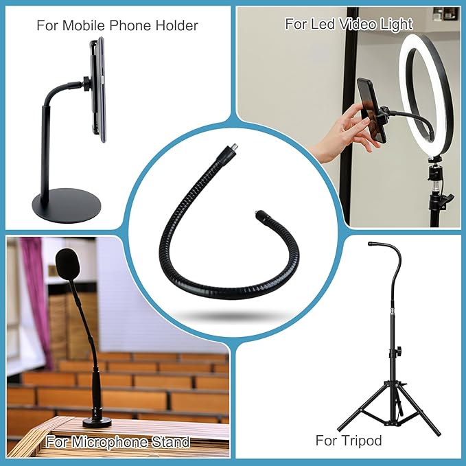 グースネックは米国標準の3/8インチ-16 UNCスレッドを使用し、さまざまなマイクロフォンクリップ、グースネックライトに適しています。マイクロフォンや他の機器を目線の高さや任意の角度に上げることができます。マイクスタンド、マイクロ/ミニライト、DIYスタンド、携帯電話スタンド、スポーツカメラなど、柔軟性を必要とする他のDIYアプリケーションで広く使用されています。