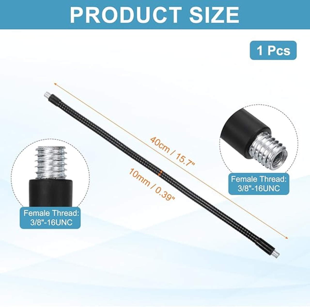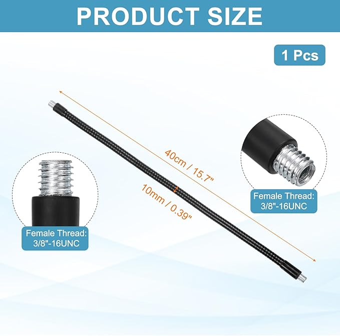 仕様: 全長: 40cm / 15.7インチ; 外径: 10mm / 0.39インチ; メススレッド: 3/8"-16; メススレッド: 3/8"-16; 素材: メタル; カラー: 黒; 梱包リスト: 1個 x グースネック