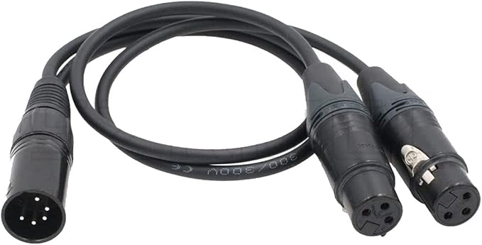 プラグA:XLR5ピンオスコネクタ; プラグB:デュアルXLR3ピンメスコネクタ。