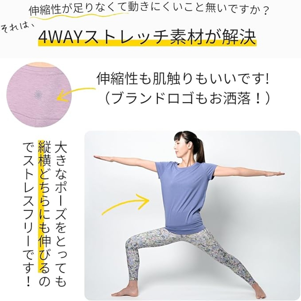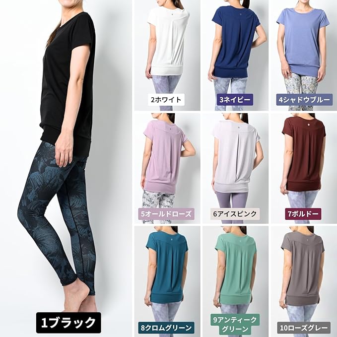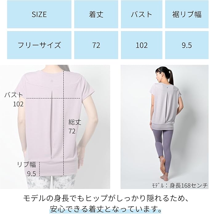 [machikaada] ヨガウェア トップス Tシャツ 体型カバー 半袖 ロング丈 着丈長い ヨガ ホットヨガ ピラティス フィットネスウェア フレンチスリーブ かわいい おしゃれ | KAZESHOP