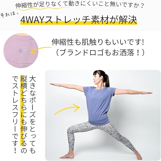 [machikaada] ヨガウェア トップス Tシャツ 体型カバー 半袖 ロング丈 着丈長い ヨガ ホットヨガ ピラティス フィットネスウェア フレンチスリーブ かわいい おしゃれ