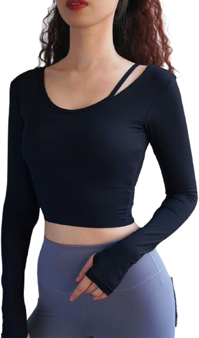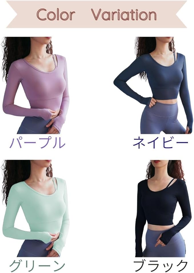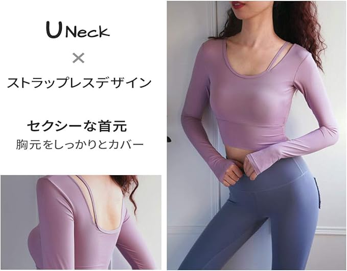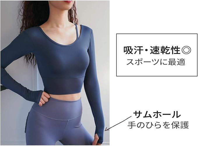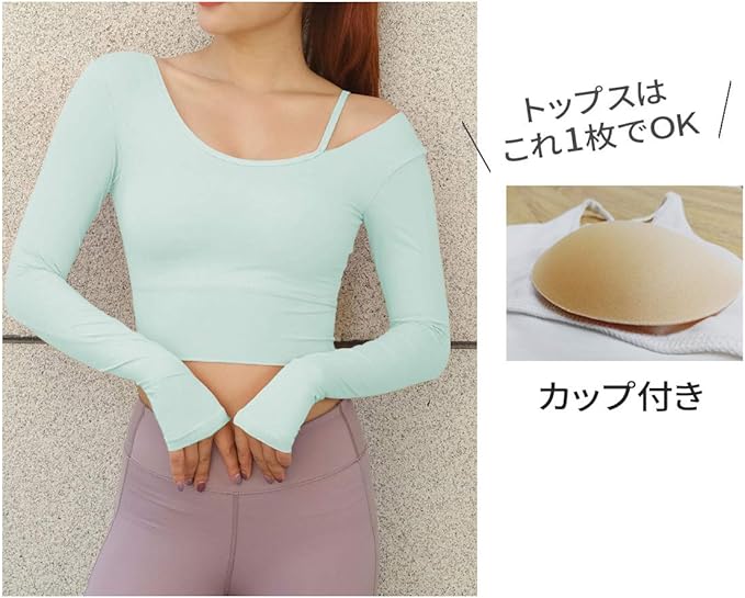 [VeroMan] ヨガウェア レディース トップス 長袖 カップ付き おしゃれ ショート丈 ppi-lstops3