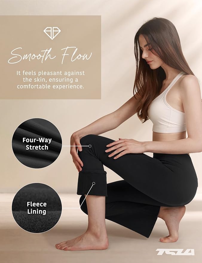 [テスラ] 裏起毛 ブーツカット ワイド ヨガパンツ レディース [吸湿・保温] ランニングウェア 起毛 スポーツパンツ ヨガウェア コンプレッションウェア 秋 冬用