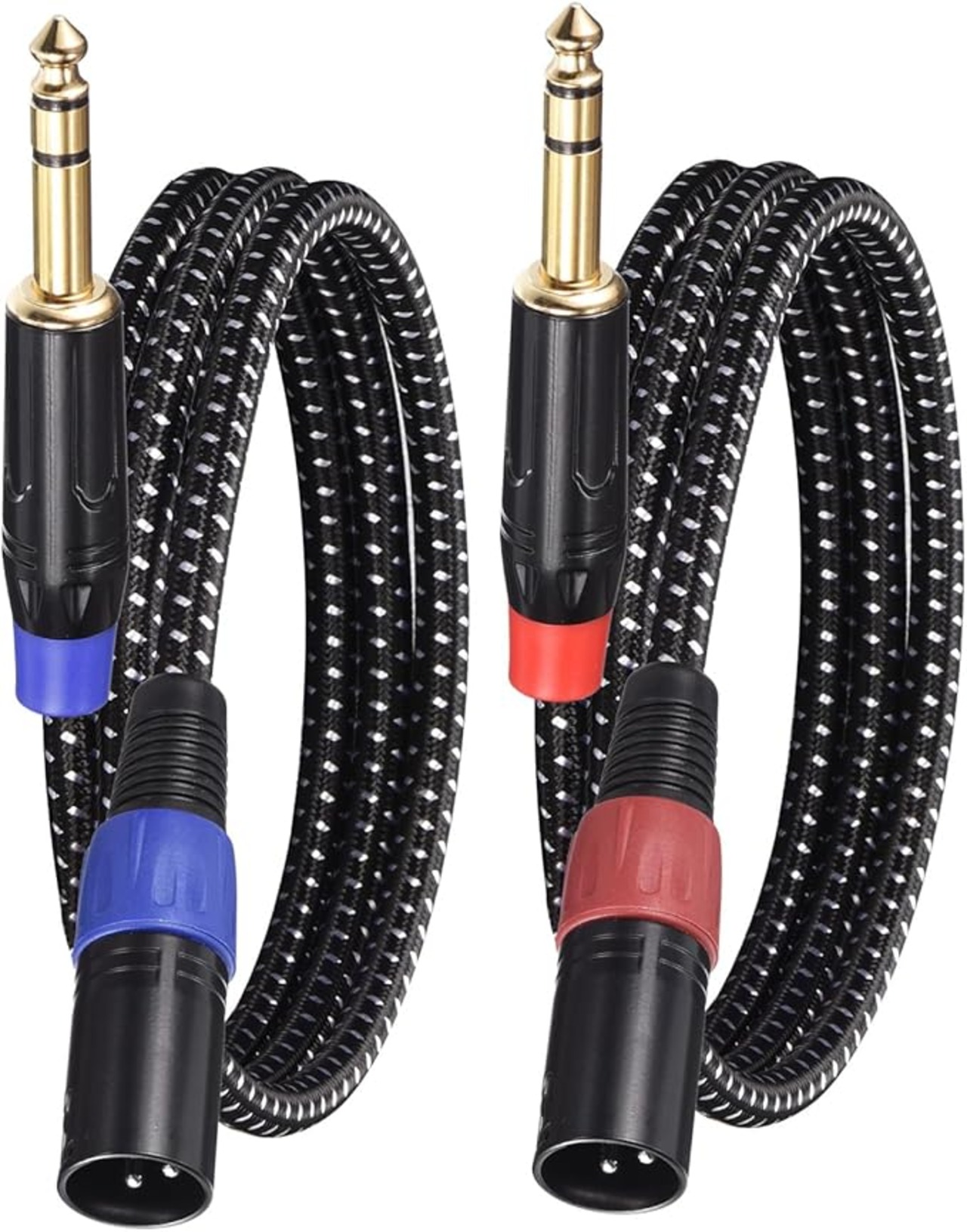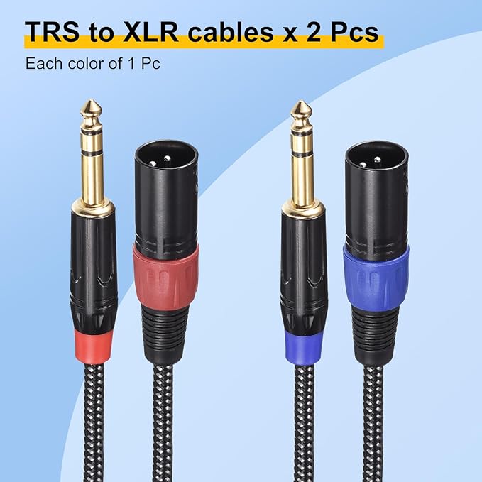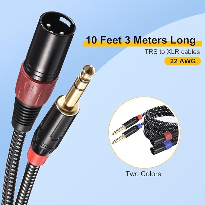 マイクケーブルは長さ10Ft3M、22AWG、端は赤と青の2色です。TRS - XLRケーブル2本のパッケージ。