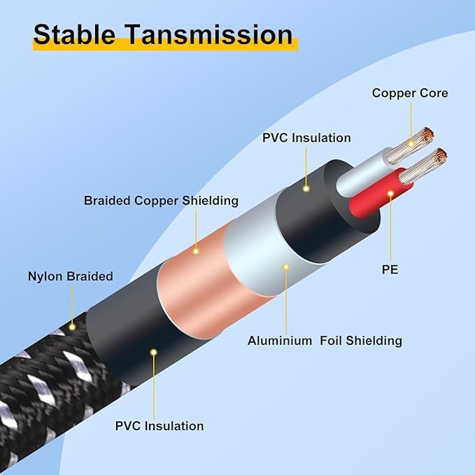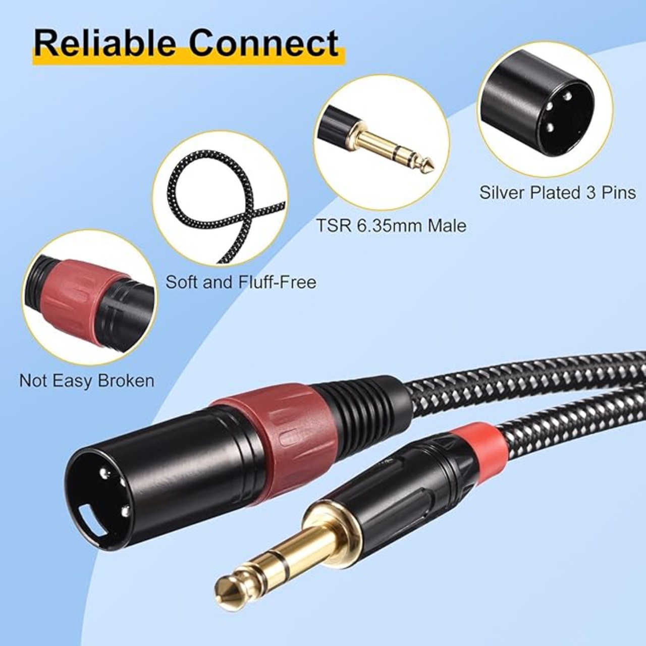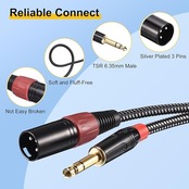 マイクコードは柔らかくしっかりと編まれており、より耐久性があり、美しく、 毛羽立ちがありません。TRS - XLRケーブルホイルと銅のデュアルOFCシールドを備えた XLR オス - メスケーブル。ノイズレスでロスレスでサウンドを優れた伝達力で実現します。セルフロック設計により、接続が安定し、XLRケーブルの抜き差しが簡単になります。