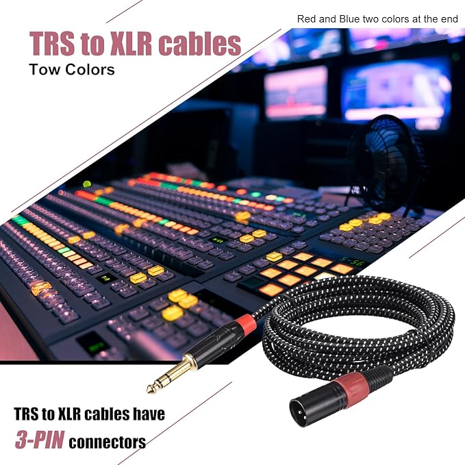 TRS - XLRケーブルには2色の3ピンコネクタがあり、見分けやすく、右端をトレースまたは一致させるのが簡単で、マイク、舞台照明、ミキシング ボード、パワー アンプ、スピーカーなどに適しています。