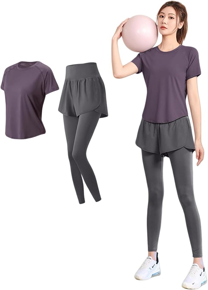 [Karsaer] ヨガウェア 上下セット レディース 体型カバー 半袖 Tシャツ ハイウエスト ヨガパンツ レギンス ピラティス トレーニング ジム スポーツウェア 吸汗速乾 伸縮通気A0063