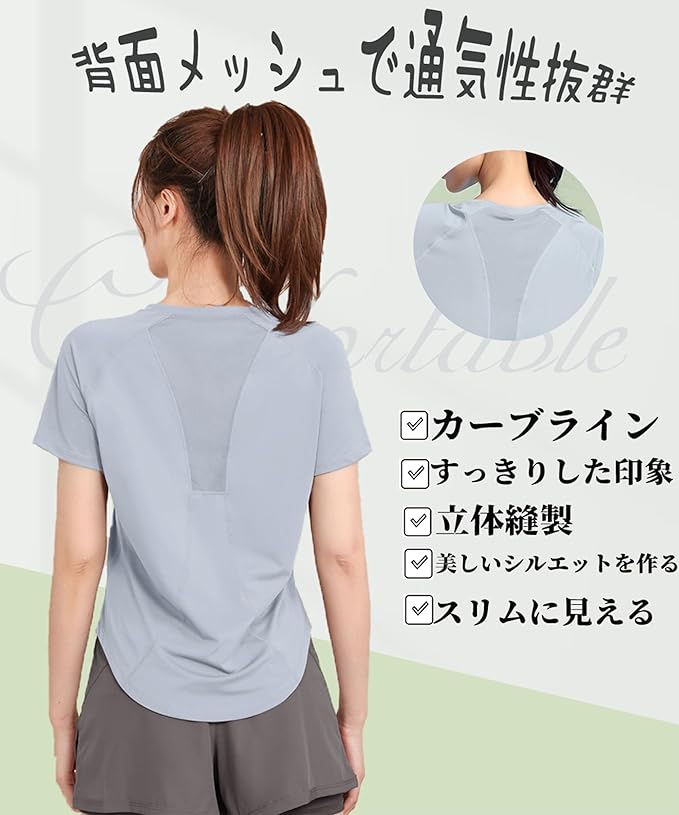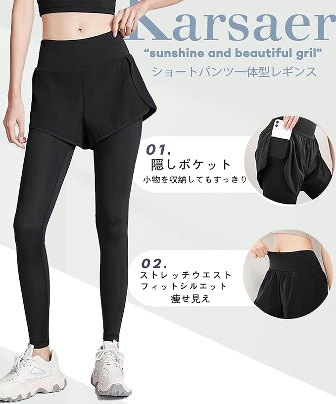 [Karsaer] ヨガウェア 上下セット レディース 体型カバー 半袖 Tシャツ ハイウエスト ヨガパンツ レギンス ダンス服 ジムウェア 快適な動き ストレッチ yoga A0063