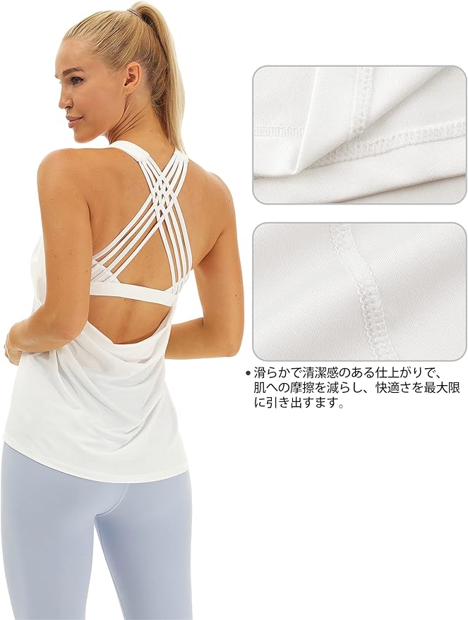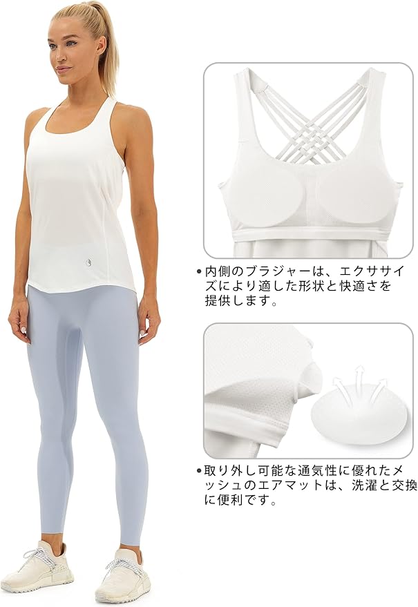 [icyzone] タンクトップ ヨガウェア トップス ノンワイヤー カップ付き 通気 速乾 キャミソール ランニング ワークアウト レディース