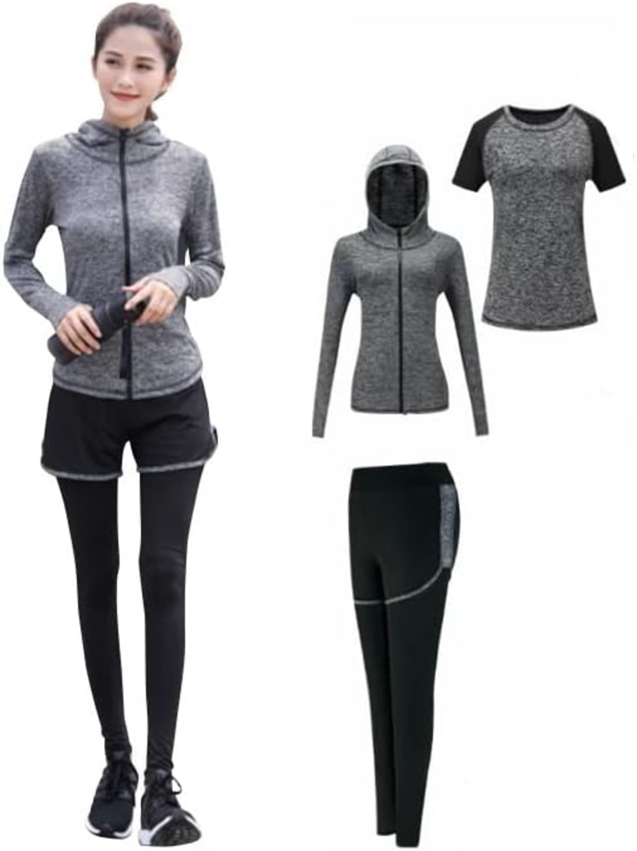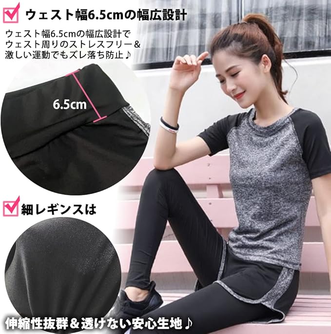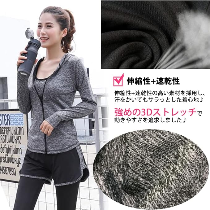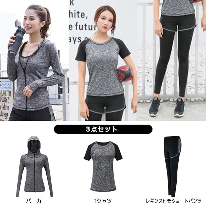 [Sokure] 軽い着心地・速乾・美シルエットでスポーツを楽しむ スポーツウェアレディース上下3点セット このセットで完結できる優れものトレーニングウェア上下セット