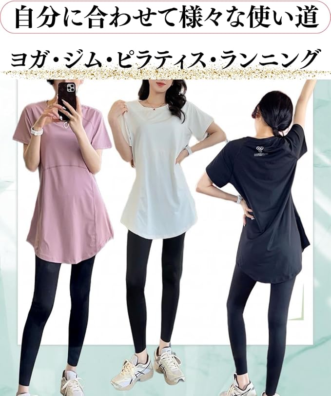 [motayu18] 安心の 体型カバー ヨガウェア セット レディース 半袖 スポーツウェア ヨガ フィットネスウェア 速乾 伸縮性 薄手 ピラティス トレーニングウェア ジム 服装 女性
