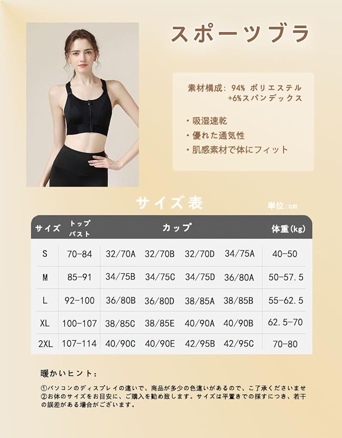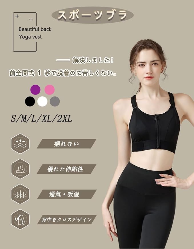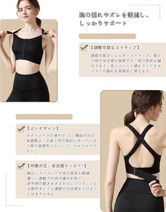 [CNYA] スポーツブラ レディース 前開きブラジャー スポブラ ブラ ヨガブラ ブラジャー トレーニング ヨガ ジム ブラ スポーツ 揺れない ノンワイヤー 吸汗速乾 ランニング ハイサポート 大きいサイズ 伸縮性 通気性 美胸美背 おしゃれ
