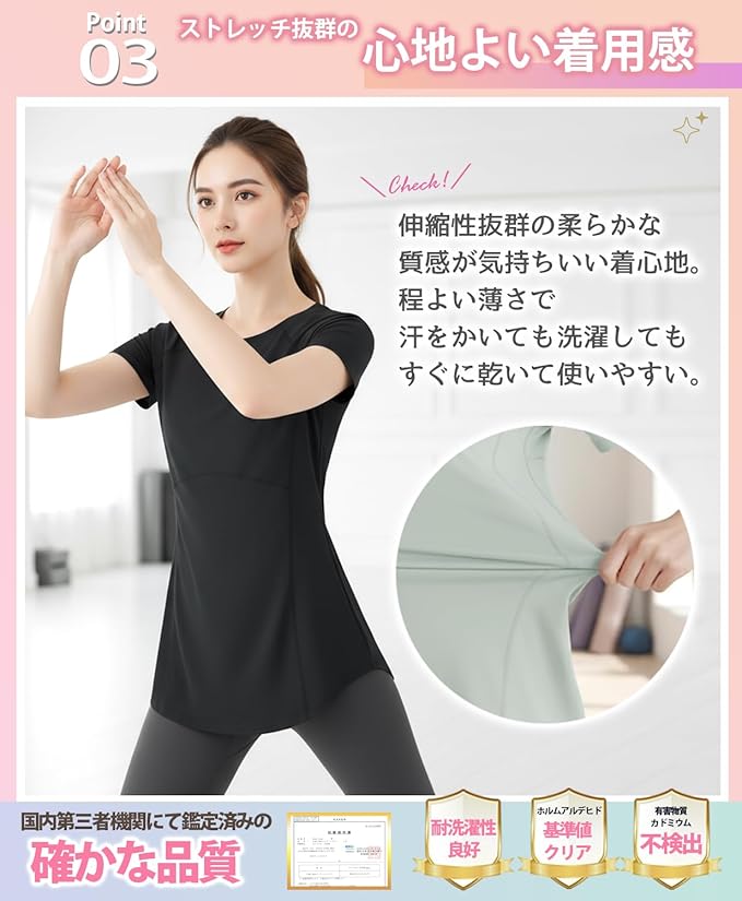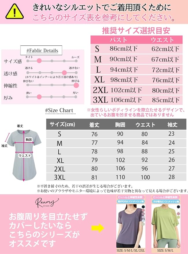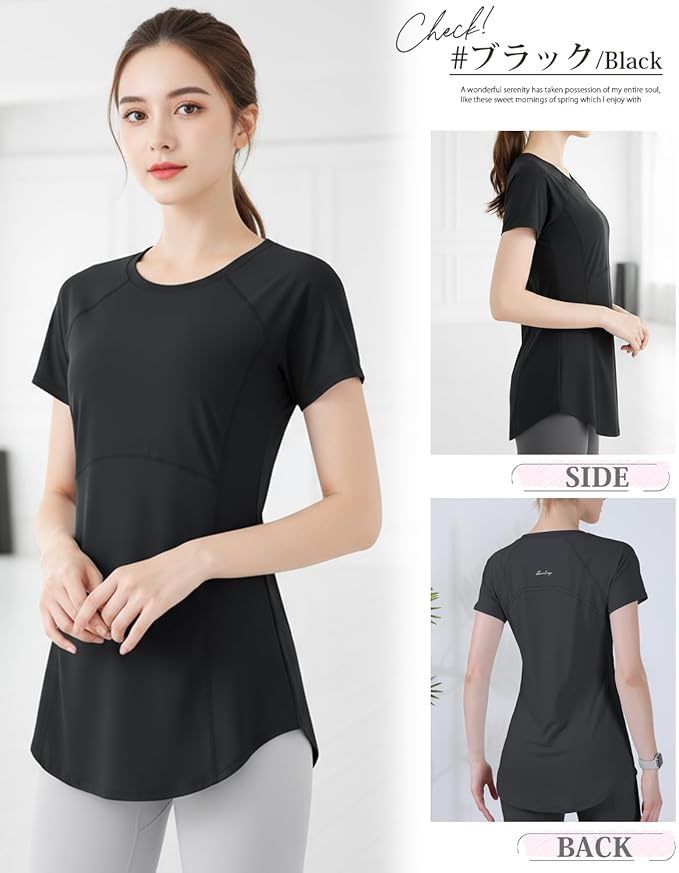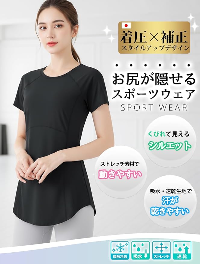 [Ranmy Stage] 【くびれシルエット】 ヨガウェア トップス 半袖 スポーツTシャツ レディース 体型カバー 速乾 薄手 丈長め 伸縮性 スポーツ ジム トレーニング ランニング ウェア | KAZESHOP