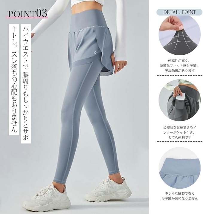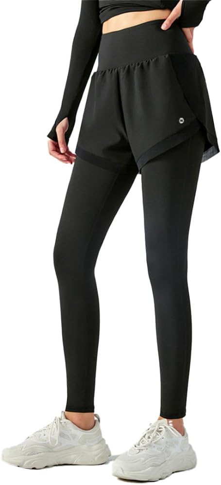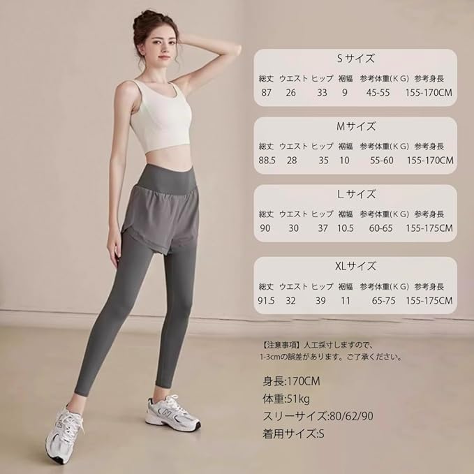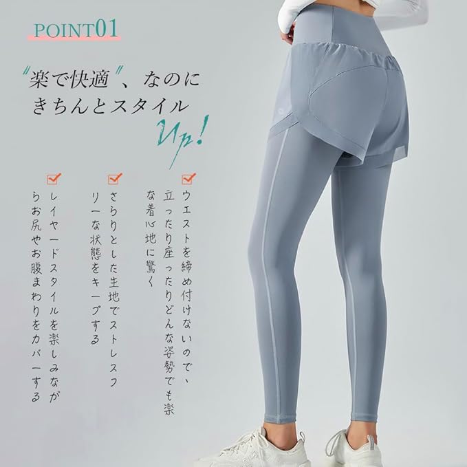 [Yomoment] 吸汗速乾 フィットネス レギンス ショート パンツ付き ランニング レギンス レディース トレーニング ストレッチ ピラティス レギンス