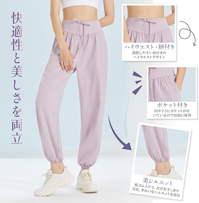[Yomoment] ヨガパンツ レディース ゆったり 接触冷感 夏 吸汗速乾 動きやすい ストレッチ スウェットパンツ ジョガーパンツ ヨガウェア 下 トレーニング ランニング ハイウエスト おしゃれ 美脚 伸縮性 通気 UVカット 快適