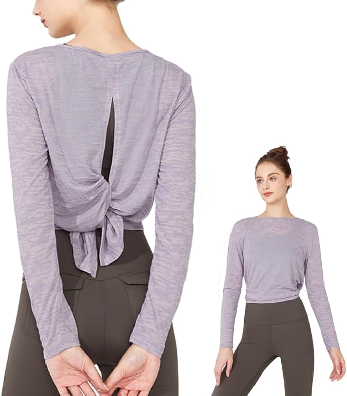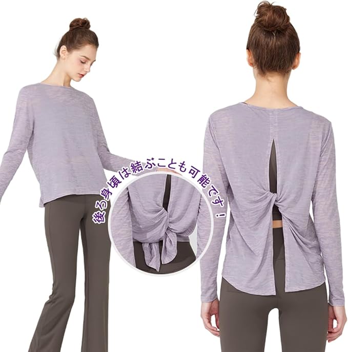 [Siomlana] 背中おしゃれ ヨガウェア 長袖 涼しい スポーツ シャツ レディース トップス ングtシャツ ピラティス 長袖ウェア おしゃれ 美背 ゆったり ストレッチ 吸汗速乾 通気性 やや透け感 シンプルデザイン ジム ランニング フィットネス | KAZESHOP