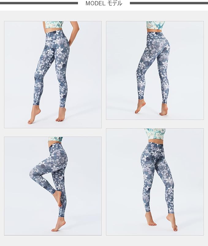 [ASHLEY FIT] ヨガパンツ レディース レギンス ヨガウェア 吸汗速乾 ストレッチ 9分丈 スポーツタイツ ホットヨガ ピラティス トレーニング 花柄パンツ (10#)