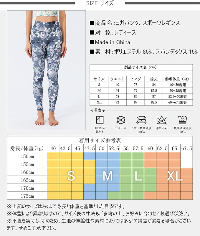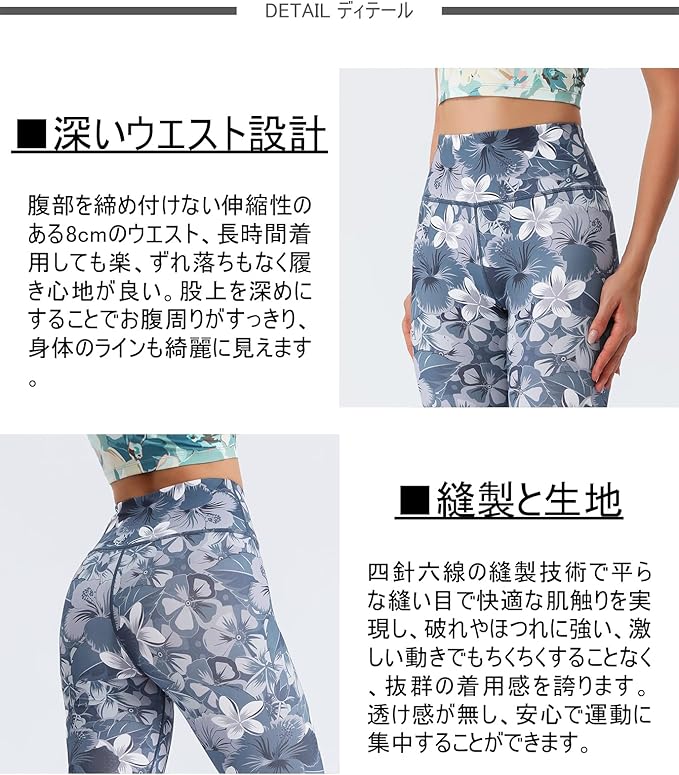 [ASHLEY FIT] ヨガパンツ レディース レギンス ヨガウェア 吸汗速乾 ストレッチ 9分丈 スポーツタイツ ホットヨガ ピラティス トレーニング 花柄パンツ (10#) | KAZESHOP