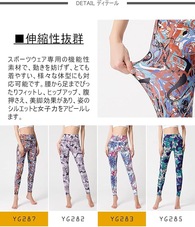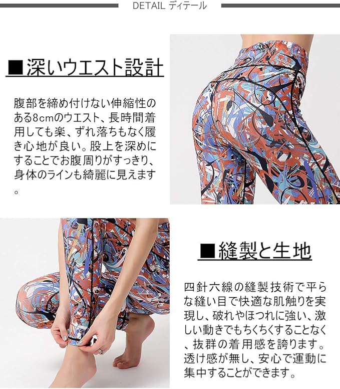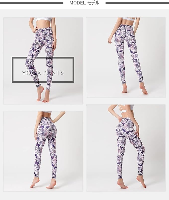 [アシュレイ] ヨガウェア レディース レギンス 吸汗速乾 ストレッチ 9分丈 スポーツタイツ ロング 柄 パンツ (04#)