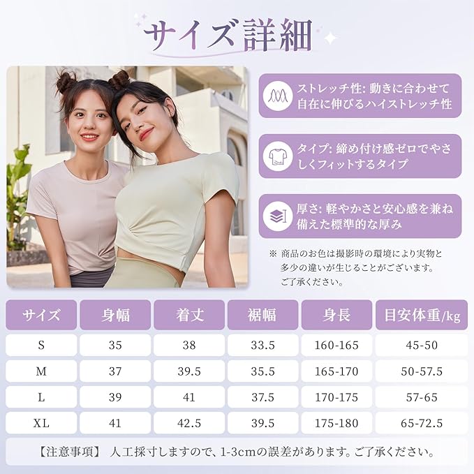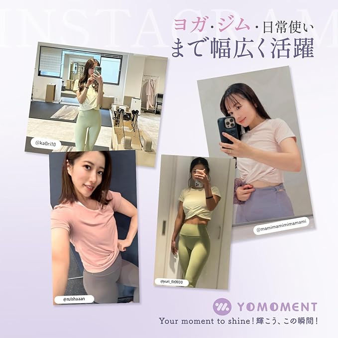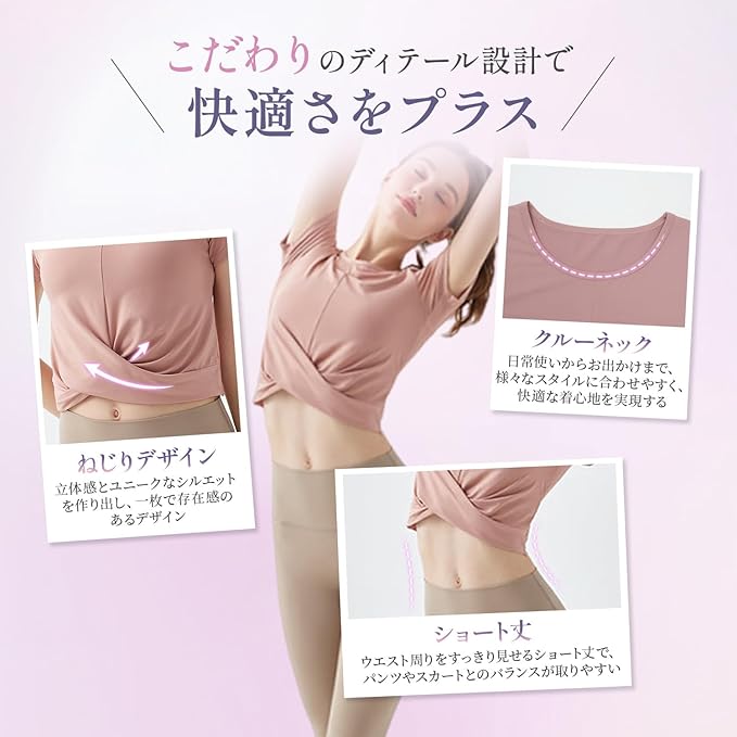 [Yomoment] ねじりデザイン ヨガウェア トップス レディース 半袖 クルーネック ショート丈 カップなし 吸汗速乾 ストレッチ 快適 動きやすい 無地 Tシャツ トレーニング フィットネス ピラティス スポーツ 通気性 伸縮性 おしゃれ