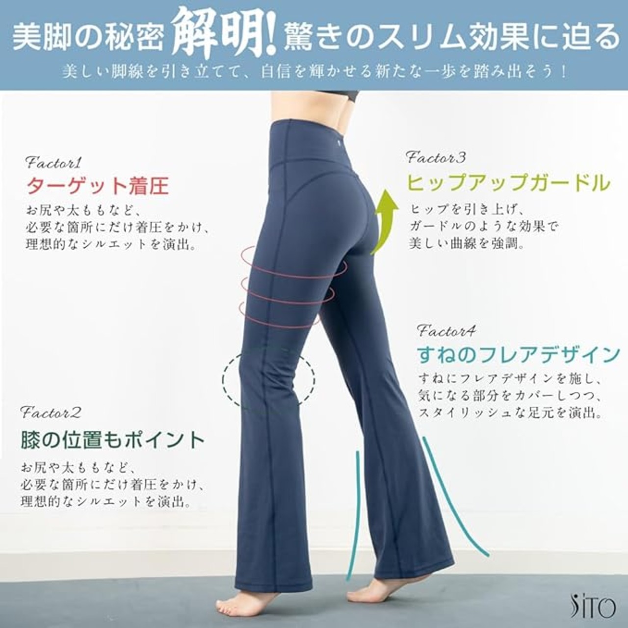 [iito.seasons] フレアレギンス レディース 10分丈 ハイウエスト 無地 ピラティス フィットネス ヨガパンツ ジャズパンツ ダンスパンツ 足長 細見え 美脚 吸汗 速乾 着痩せ UVカット