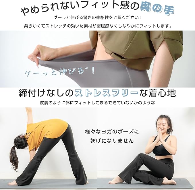 [iito.seasons] フレアレギンス レディース 10分丈 ハイウエスト 無地 ピラティス フィットネス ヨガパンツ ジャズパンツ ダンスパンツ 足長 細見え 美脚 吸汗 速乾 着痩せ UVカット | KAZESHOP