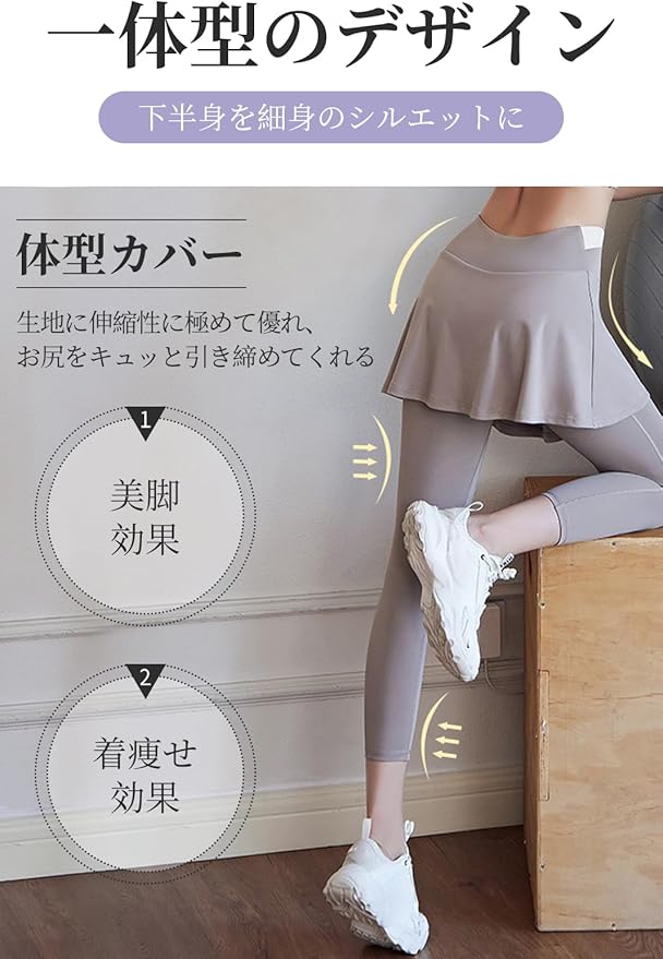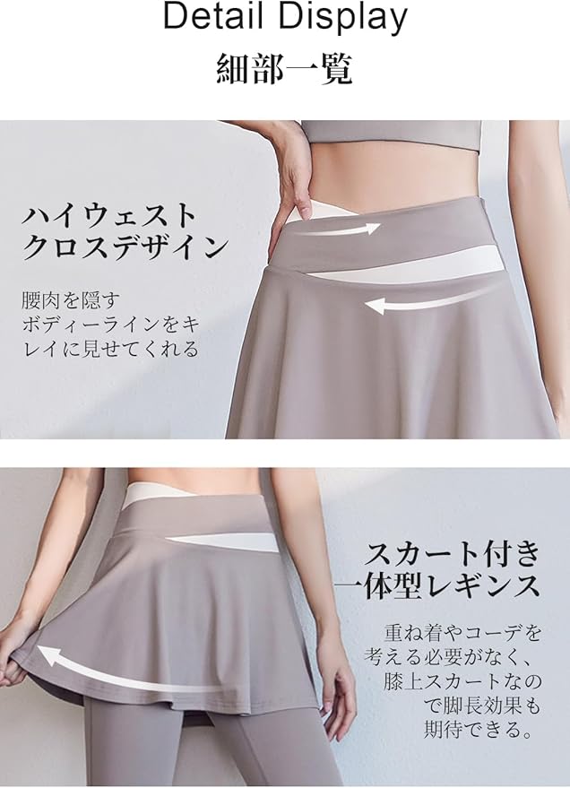 [MORGEN SKY] レディース ヨガパンツ スカート付き レギンス スコート Aライン 9分丈 スパッツ 一体型 部屋着 ジム ヨガウェア フィットネス スポーツ テニス トレーニング ハイウエスト ストレッチ 美脚 通気 速乾 CK033 | KAZESHOP