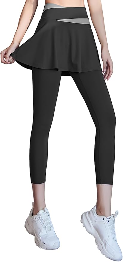 [MORGEN SKY] レディース ヨガパンツ スカート付き レギンス スコート Aライン 9分丈 スパッツ 一体型 部屋着 ジム ヨガウェア フィットネス スポーツ テニス トレーニング ハイウエスト ストレッチ 美脚 通気 速乾 CK033