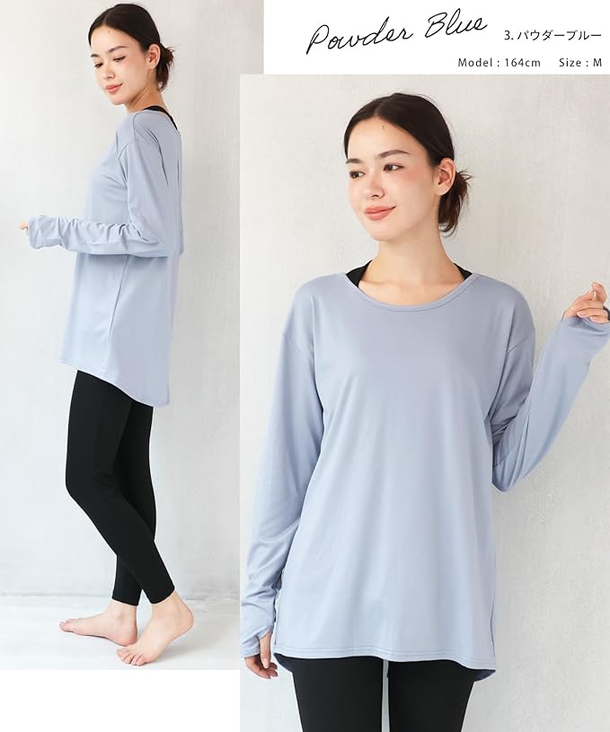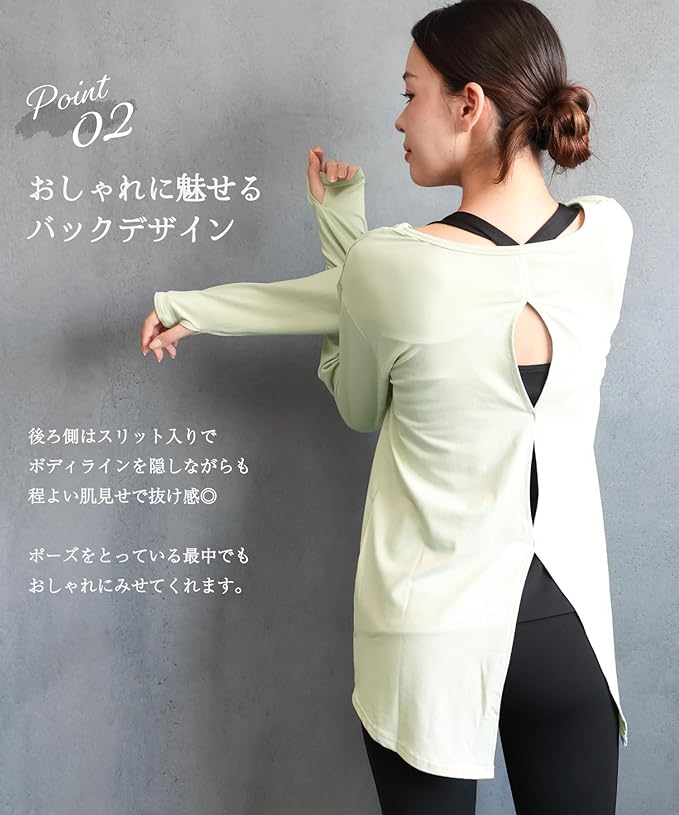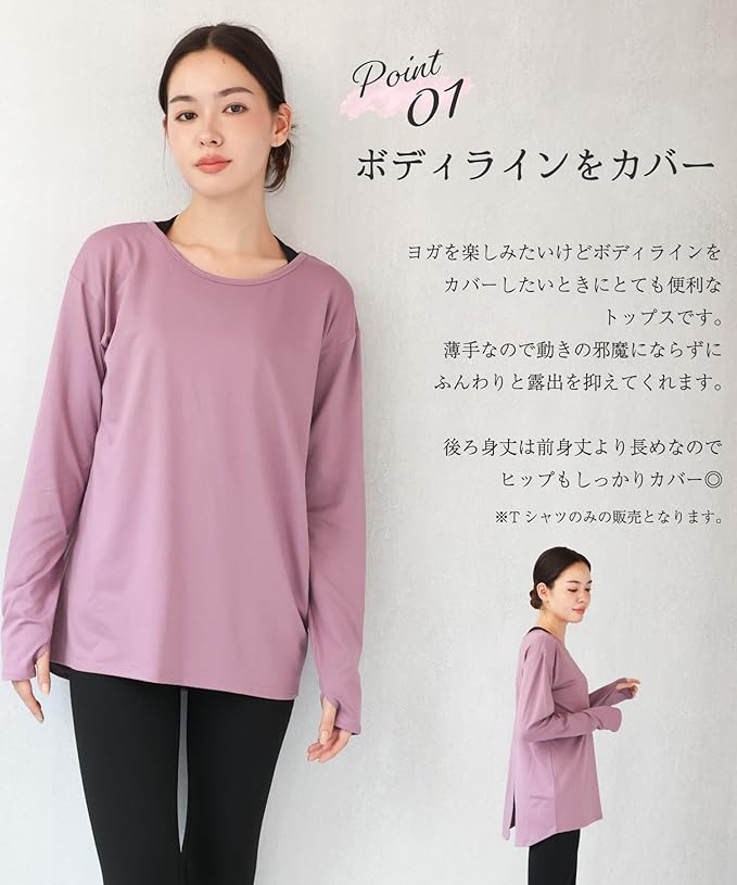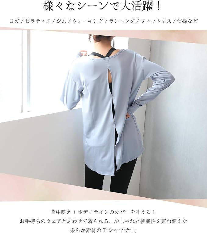 [ON NISHIKI] ヨガウェア トップス 長袖 UVカット 丈長め 体型カバー おしゃれ Tシャツタイプ スポーツウェア ヨガ ピラティス フィットネス ジム