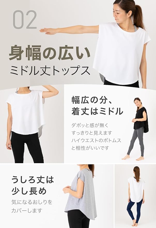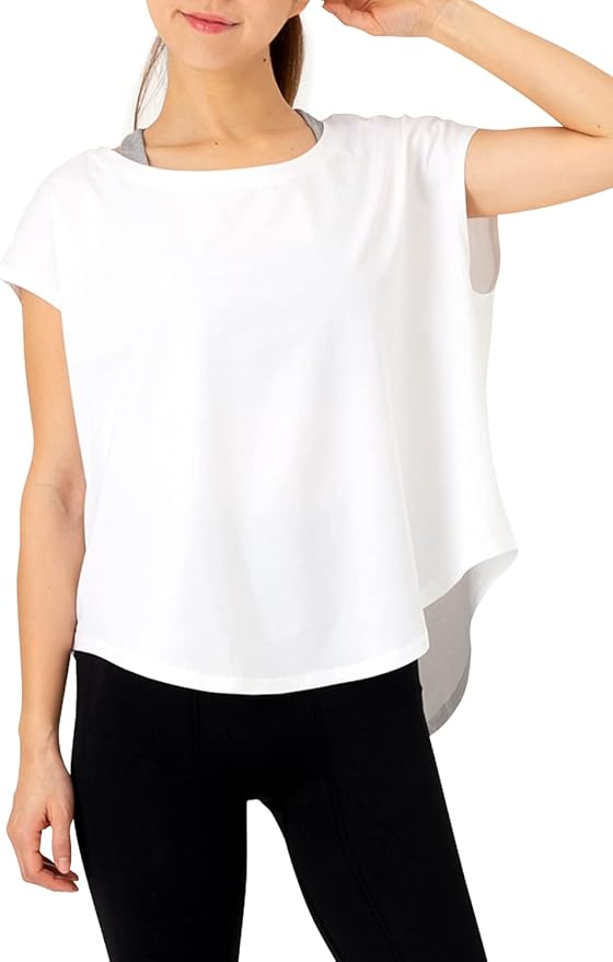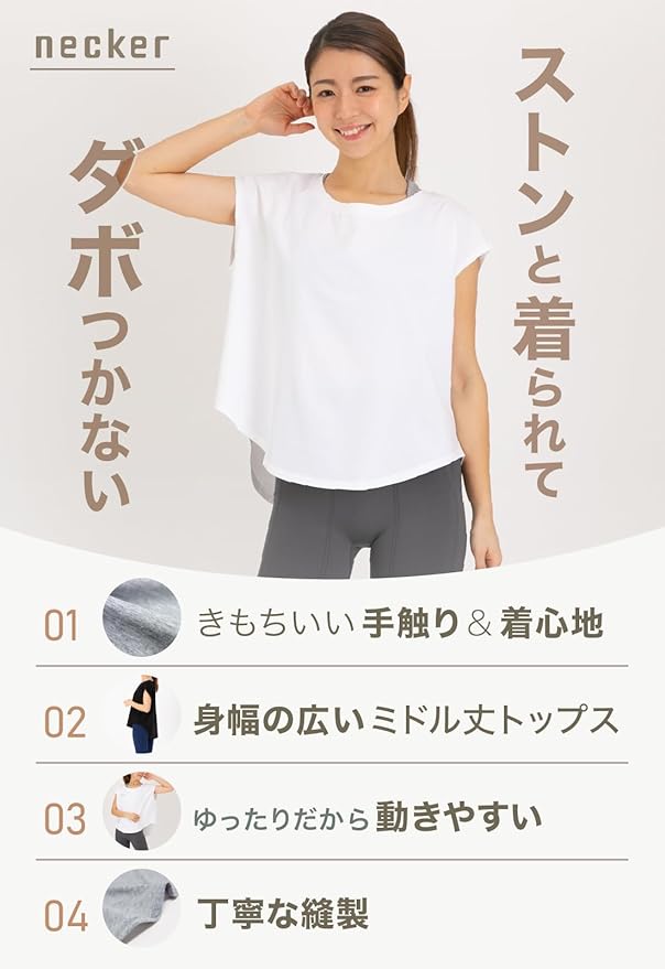 [necker] ヨガウェア トップス スポーツ Tシャツ 【さらさら軽やか】 吸汗 速乾 ホットヨガ ピラティス ジム フィットネス ウェア 体型カバー お尻が隠れる 丈長め