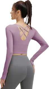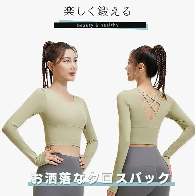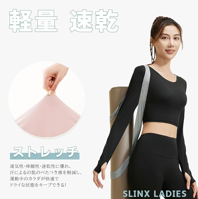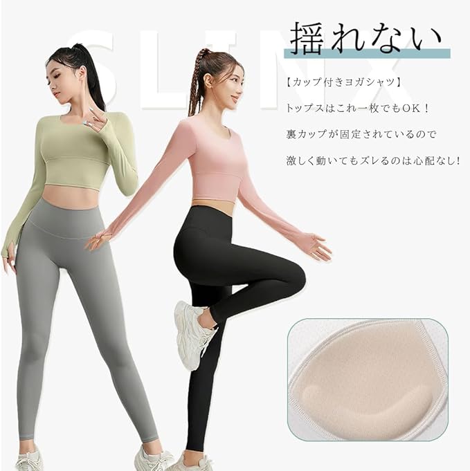 [SLINX] レディース ヨガウェア カップ付き 指穴付き 長袖 tシャツ トップス クススバック ヨガ ブラトップ 揺れない 無地 軽量 速乾 ストレッチ スポーツウェア フィットネス YJCT02