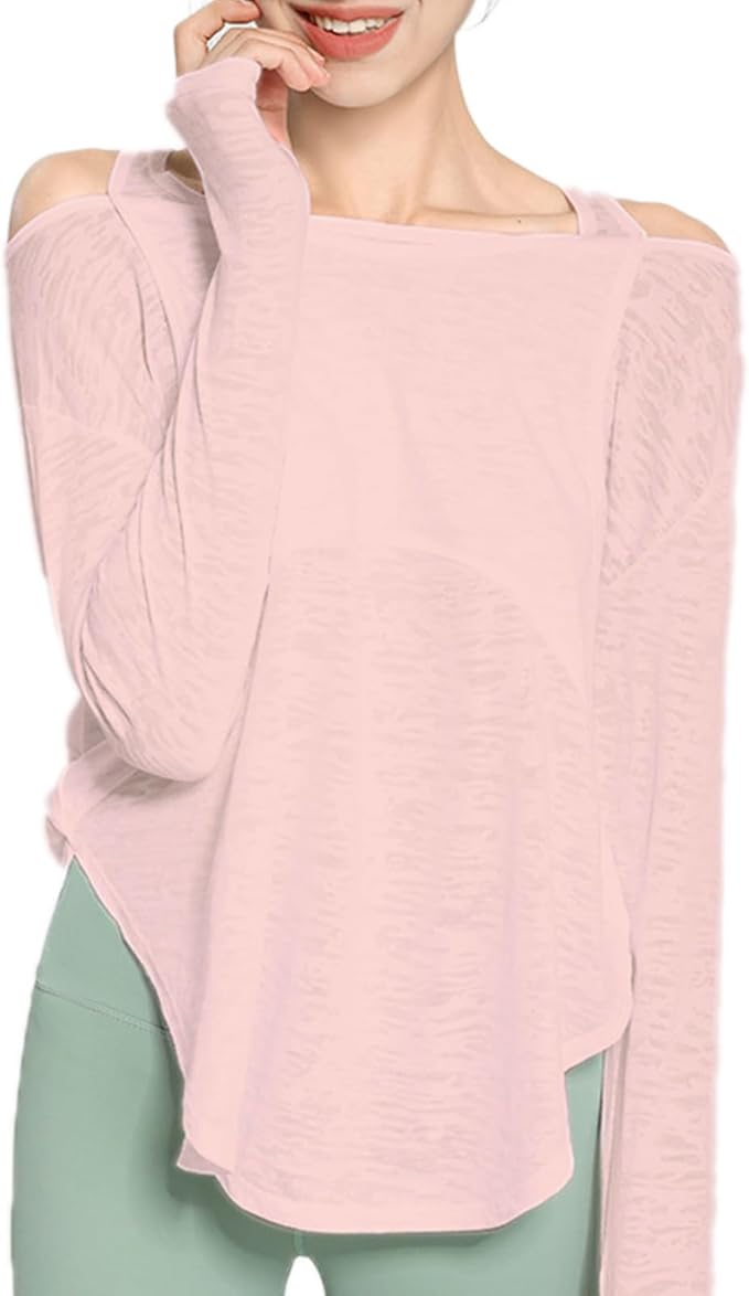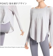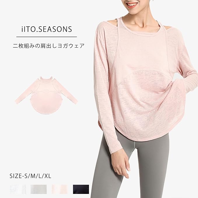[iito.seasons] ヨガウェア レディース 長袖 オープンショルダー ゆったり フィットネスウェア 体型カバー ロング丈 冷感シャツ 薄手 吸汗 速乾 UVカット 紫外線対策 おしゃれ 人気