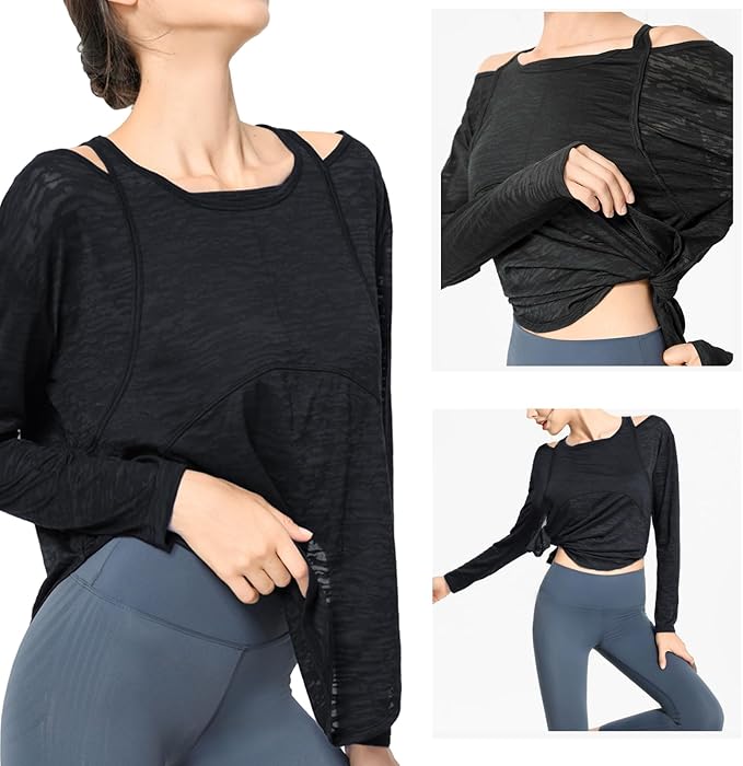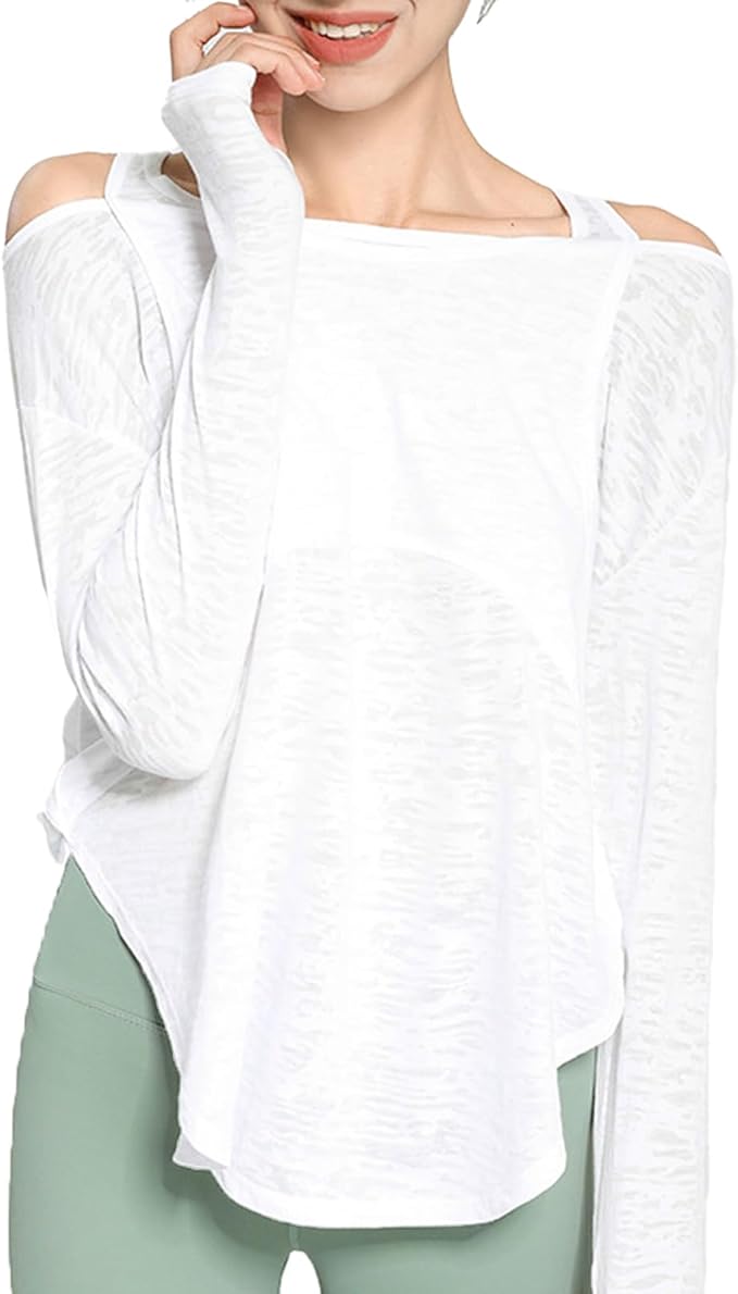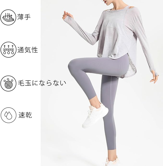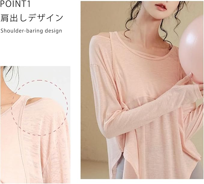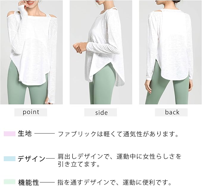 [iito.seasons] ヨガウェア レディース 長袖 オープンショルダー ゆったり フィットネスウェア 体型カバー ロング丈 冷感シャツ 薄手 吸汗 速乾 UVカット 紫外線対策 おしゃれ 人気 | KAZESHOP