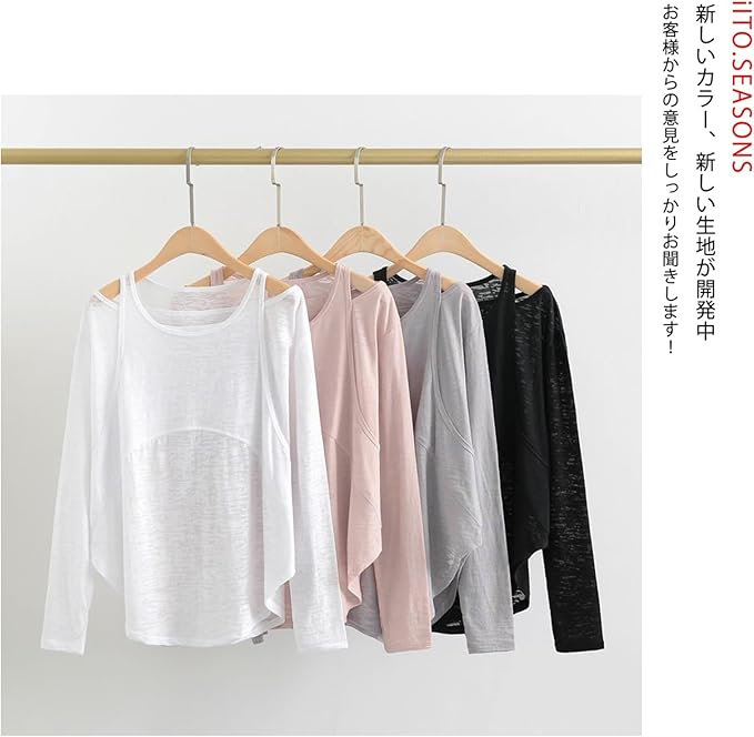 [iito.seasons] ヨガウェア レディース 長袖 オープンショルダー ゆったり フィットネスウェア 体型カバー ロング丈 冷感シャツ 薄手 吸汗 速乾 UVカット 紫外線対策 おしゃれ 人気