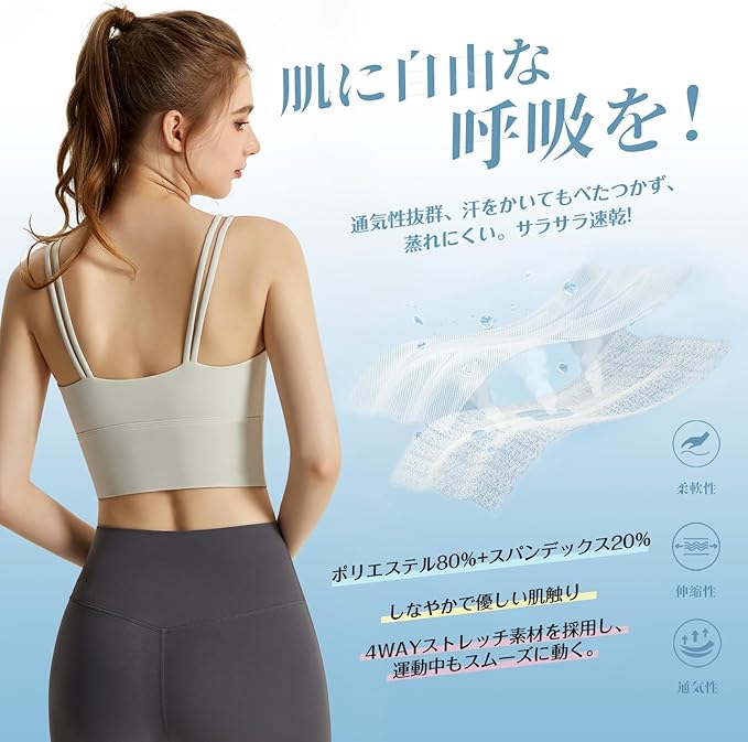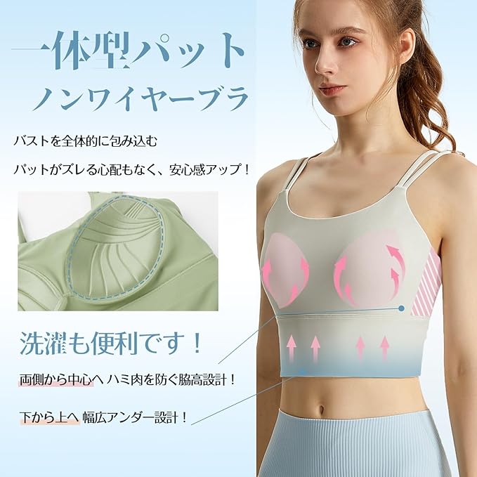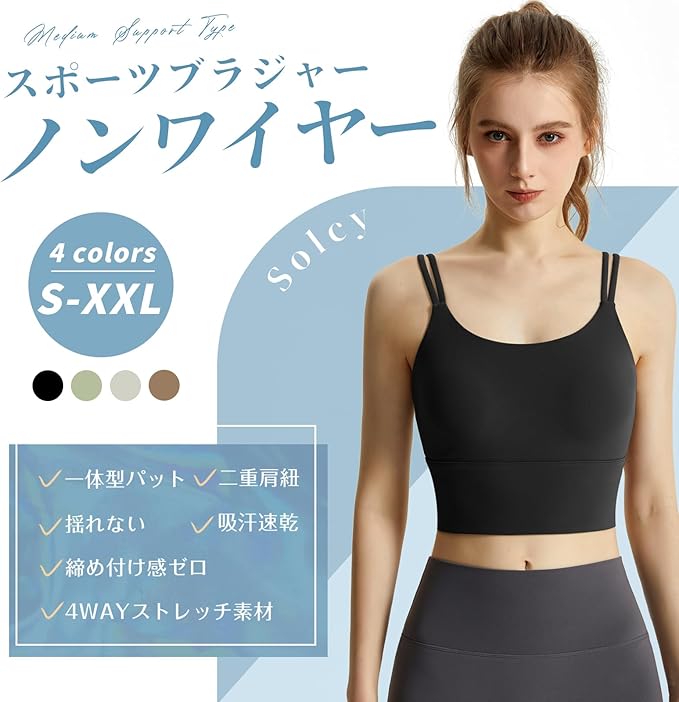 [Solcy] ブラジャー スポーツブラ ノンワイヤーブラ ホックなし フルカップ 二重肩紐 ブラ レディース スポブラ 揺れない トレーニング ヨガ 吸汗速乾
