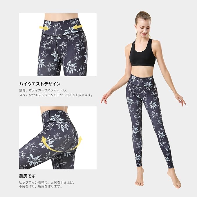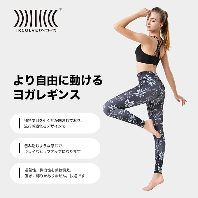 [IRCOLVE] ヨガウェア レギンス ヨガパンツ ピラティス ホットヨガ ウェア 9分丈 花柄パンツ ヨガレギンス スポーツレギンス レディース 吸汗速乾