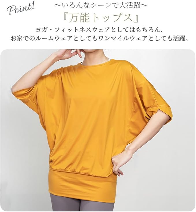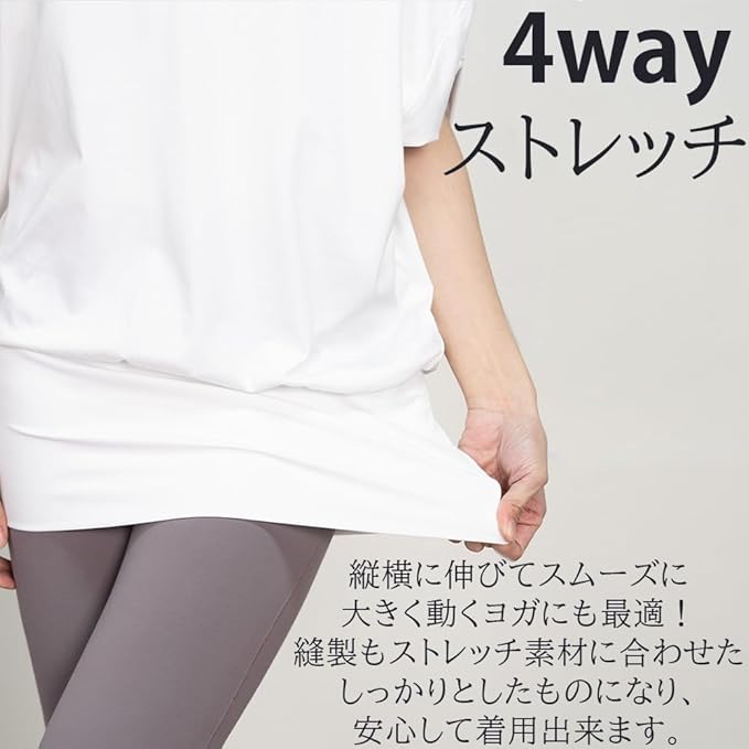 [iito.seasons] ヨガ ドルマンスリーブ ヨガウェア レディース 丈長め ゆったり トップス 体型カバー フィットネス 半袖 スポーツ フィットネス 吸汗速乾 UVカット 紫外線対策 薄手 夏 おしゃれ かわいい | KAZESHOP