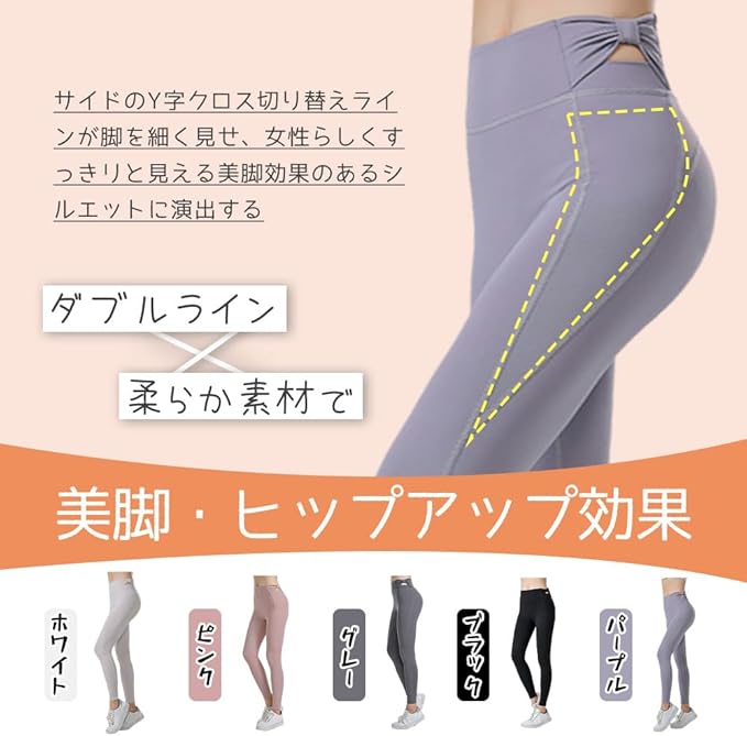 [Akihee] ヨガパンツ レディース ハイウエスト 吸汗速乾 蝶結び おしゃれ かわいい 通気性 伸縮性 トレーニング ハイサポート 快適な動き ジムウェア 着痩せ 美尻 美脚