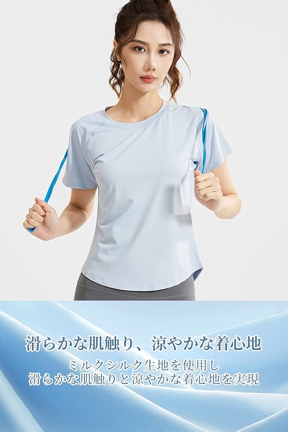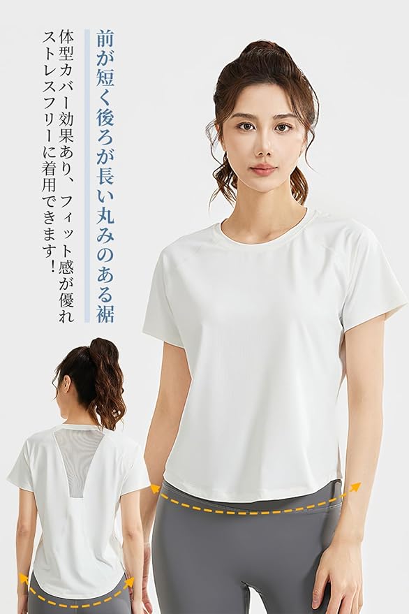 [MORGEN SKY] ヨガウェア アクティブシャツ 半袖 レディース トップス 丸裾 メッシュ 通気 薄手 ストレッチ 体型カバー 着痩せ スポーツウェア ヨガ ダンス フィットネス おしゃれ YD016