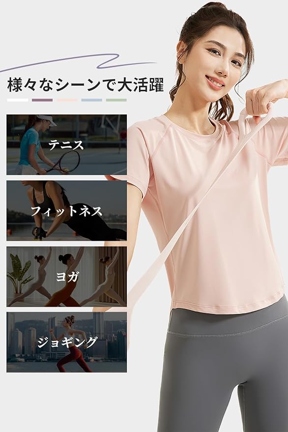 [MORGEN SKY] ヨガウェア アクティブシャツ 半袖 レディース トップス 丸裾 メッシュ 通気 薄手 ストレッチ 体型カバー 着痩せ スポーツウェア ヨガ ダンス フィットネス おしゃれ YD016 | KAZESHOP