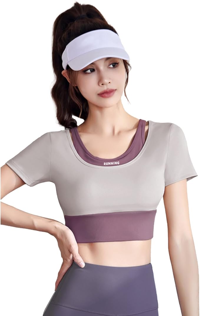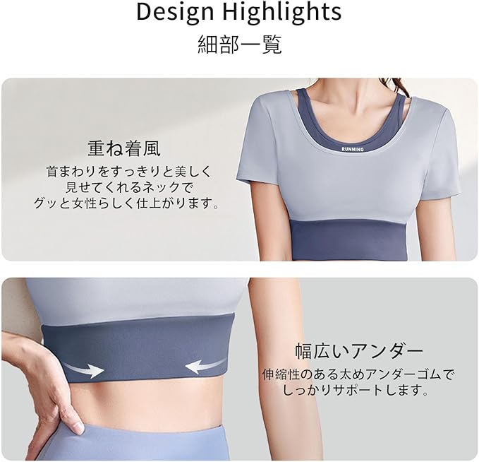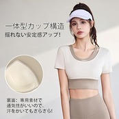 [MORGEN SKY] ヨガウェア スポーツウェア レディース トップス 半袖 スポーツブラ フィットネスウェア カップ付き ショート丈 テニス ゴルフ ジム 揺れない フィットネス トレーニング ランニング ストレッチ 通気 速乾 おしゃれ YD035