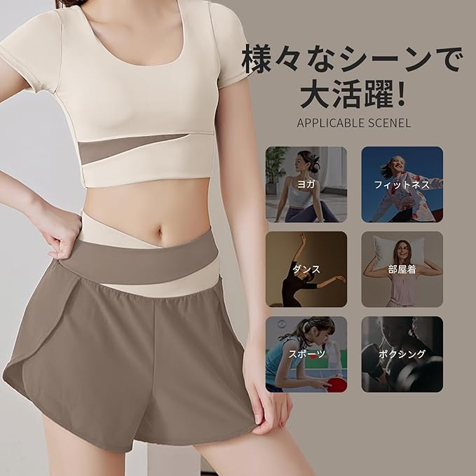 [MORGEN SKY] レディース ショートパンツ 短パン ジョガーパンツ 部屋着 ジム ヨガウェア フィットネス スポーツ スウェット ランニング トレーニング ショーツ付き ポケット 3分丈 ゆったり 通気 速乾 薄手 DK007